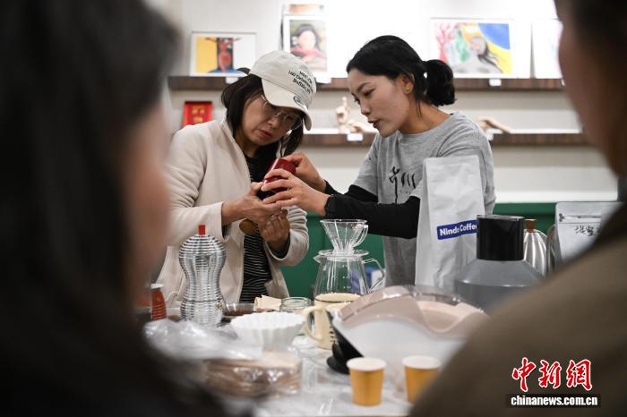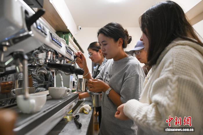9月1日,2025年西藏自治區(qū)拉薩市第二期“青年夜?!闭介_(kāi)班。圖為夜校學(xué)員在上咖啡制作課。中新社記者 貢嘎來(lái)松 攝