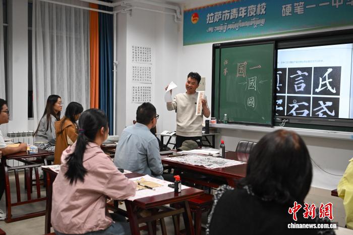 9月1日,2025年西藏自治區(qū)拉薩市第二期“青年夜校”正式開(kāi)班。圖為夜校學(xué)員在上書(shū)法課。中新社記者 貢嘎來(lái)松 攝