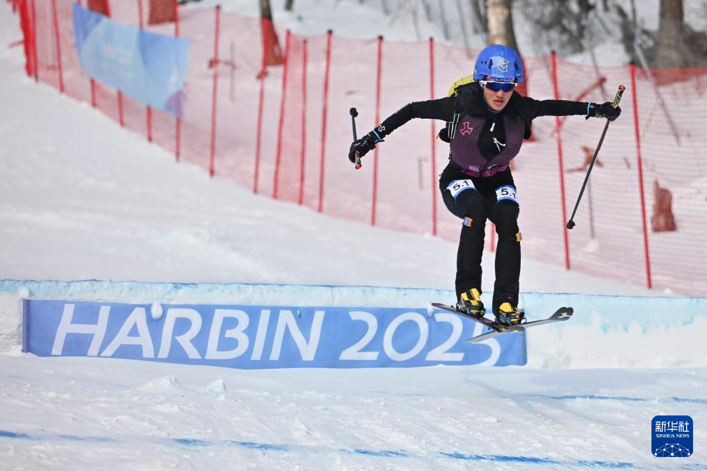 2月12日,次旦玉珍在第九屆亞冬會(huì)滑雪登山混合接力決賽中,她當(dāng)天和隊(duì)友布魯爾獲得冠軍。新華社記者 謝劍飛 攝