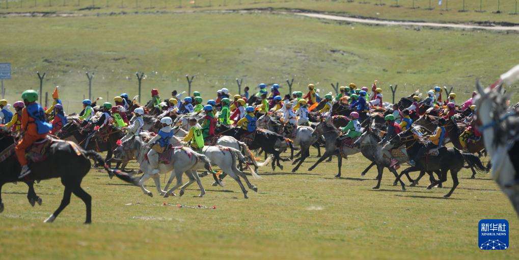 2024年8月12日,騎手在2024年恰青賽馬節(jié)傳統(tǒng)十公里大跑項(xiàng)目中角逐。新華社記者 晉美多吉 攝