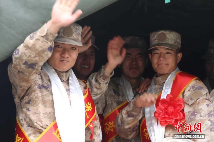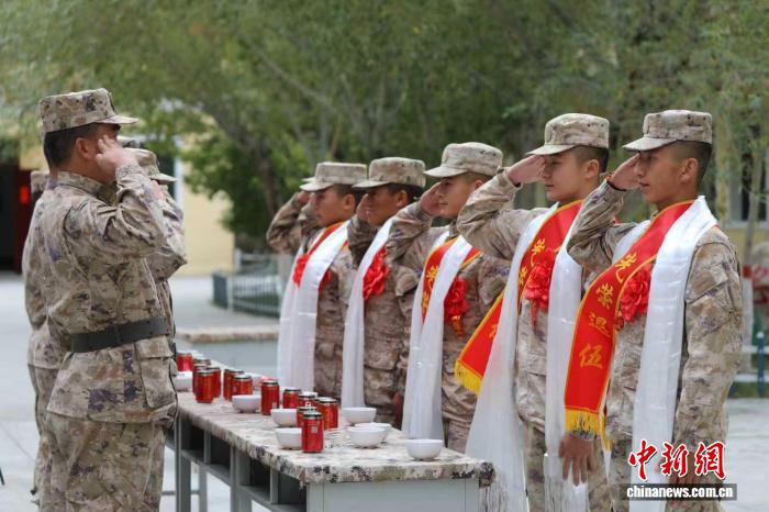 西藏阿里軍分區(qū)某邊防團(tuán)什布奇邊防連9月4日為十余名服役期滿退役的老兵舉行歡送儀式。