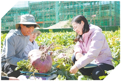 拉薩河畔,晨霧未散,曲水才納國家現(xiàn)代農(nóng)業(yè)示范區(qū)里一派豐收景象,一顆顆蕪菁大如籃球。中國科學(xué)院青藏高原研究所副研究員姜麗麗雙手托住其中一顆直徑近30厘米的蕪菁,激動(dòng)地說:“沒想到能長這么大!”