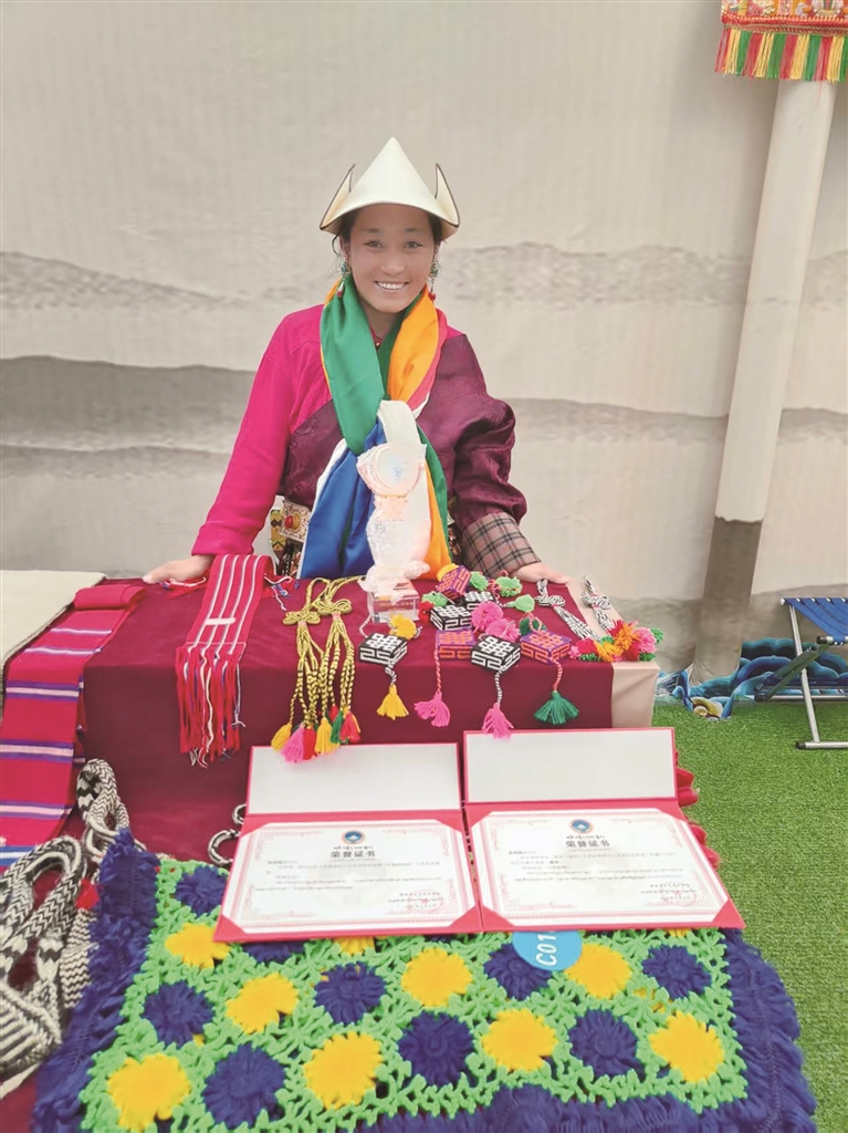 來自色尼區(qū)羅瑪鎮(zhèn)的索朗德吉在比賽中獲得了銅獎,她表示:“未來我希望能夠編織出更多豐富多樣的產(chǎn)品,讓它們走進市場、受到大家的歡迎?!?/p>