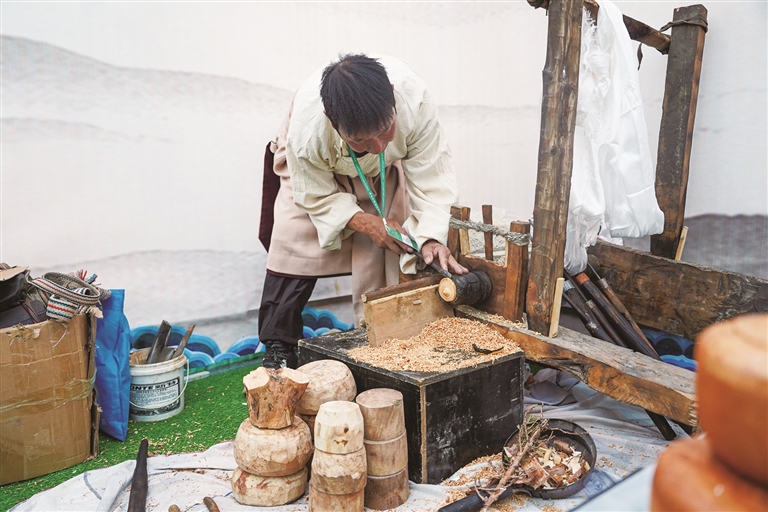 比如縣白嘎鄉(xiāng)的木碗制作傳承人杰參年扎的作品榮獲銀獎。他表示:“作為一名木碗制作技藝的非遺代表性傳承人,我深知責任重大,將來一定努力把這門有一千三百多年歷史的手藝傳承下去?!?/p>