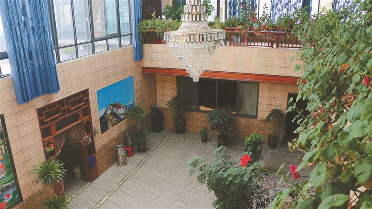 “現(xiàn)在的日子,以前想都不敢想?!眲偨M穿好睡衣從浴室出來(lái),倒上一杯酥油茶,愜意地靠在沙發(fā)上。陽(yáng)光穿過(guò)屋頂?shù)牟A旎ò澹谝粯菈Ρ谕断掳唏g的光影。望著二樓的房間,剛組回憶起了半個(gè)多世紀(jì)前。