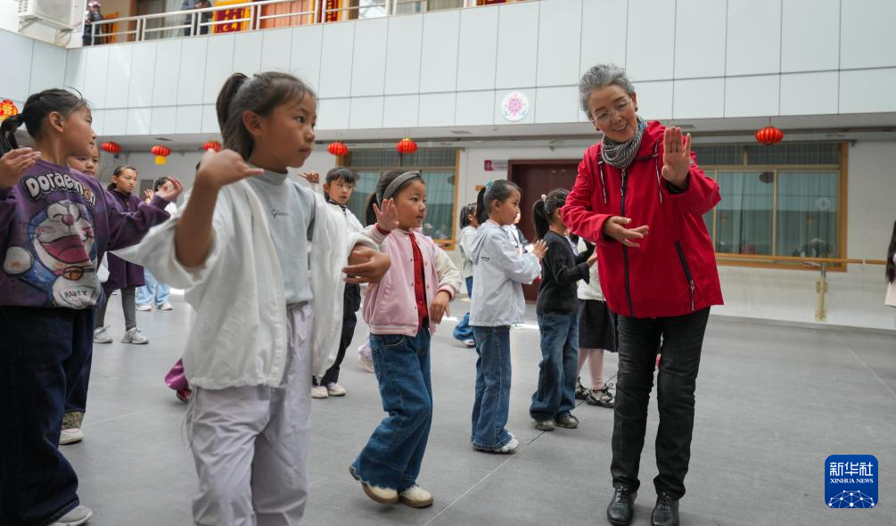 9月14日,巴桑老師在西藏自治區(qū)群藝館教授孩子們藏戲表演。新華社記者 晉美多吉 攝