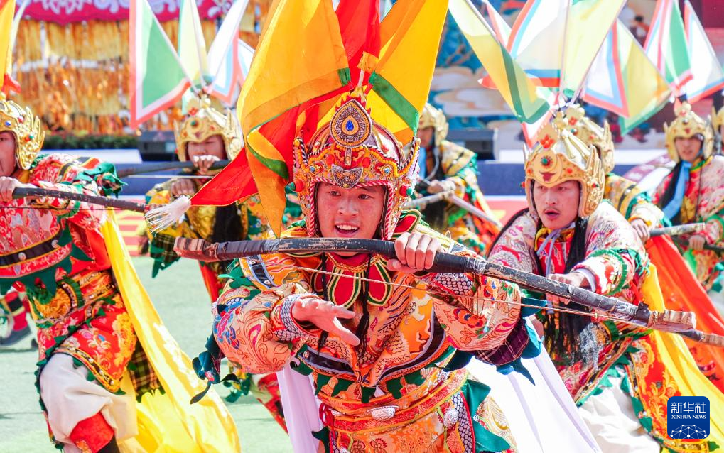 這是9月15日拍攝的開(kāi)幕式上的格薩爾王舞蹈表演。新華社記者 格桑朗杰 攝