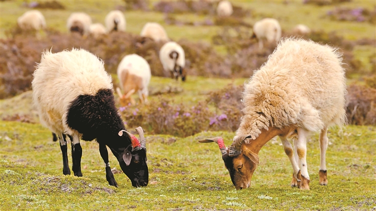 圖為貢覺縣特有的優(yōu)良畜種阿旺綿羊,成為村民增收致富的穩(wěn)定選擇。