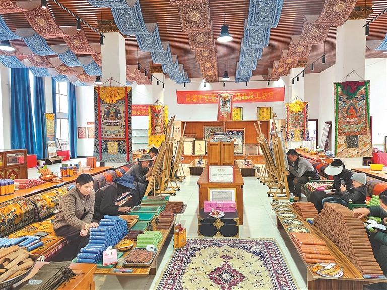 在政府持續(xù)的政策扶持、資源對(duì)接和市場(chǎng)推廣助力下,合作社發(fā)展態(tài)勢(shì)良好,銷售渠道變寬,有效激活了桑珠榮村的發(fā)展?jié)撃堋D壳?,合作社共有成員12人,其中6名是唐卡畫師,6名專職制作藏香。通過(guò)唐卡創(chuàng)作與藏香加工,合作社已實(shí)現(xiàn)盈利27萬(wàn)余元,不僅直接解決了12名村民的穩(wěn)定就業(yè)問(wèn)題,還為桑珠榮村贏得了“唐卡與藏香傳承第一村”的美譽(yù),成為當(dāng)?shù)匚幕x能鄉(xiāng)村振興的典范。