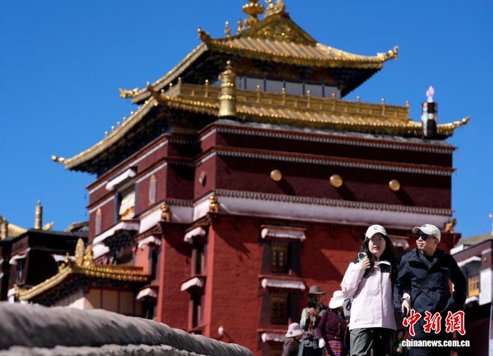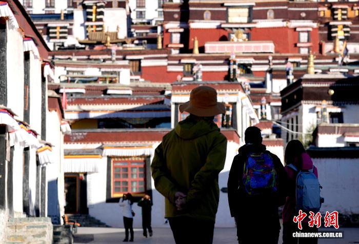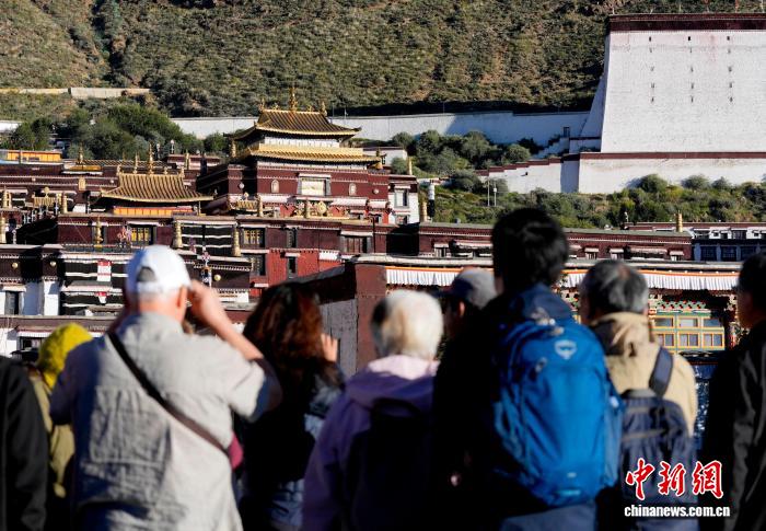 10月7日,游客在西藏日喀則市扎什倫布寺參觀。扎什倫布寺始建于公元1447年,是中國國家5A級旅游景區(qū)。憑借深厚的歷史底蘊和獨特的文化魅力,吸引眾多中外游客參觀游覽。中新社記者 李林 攝