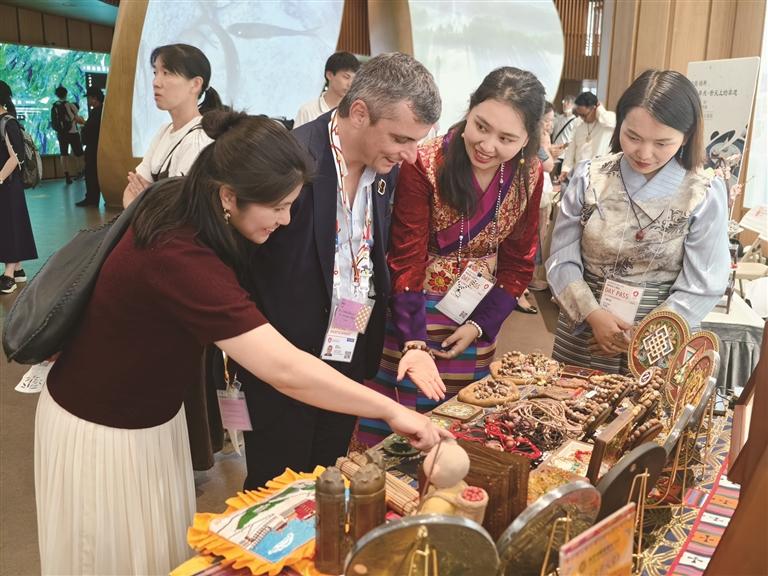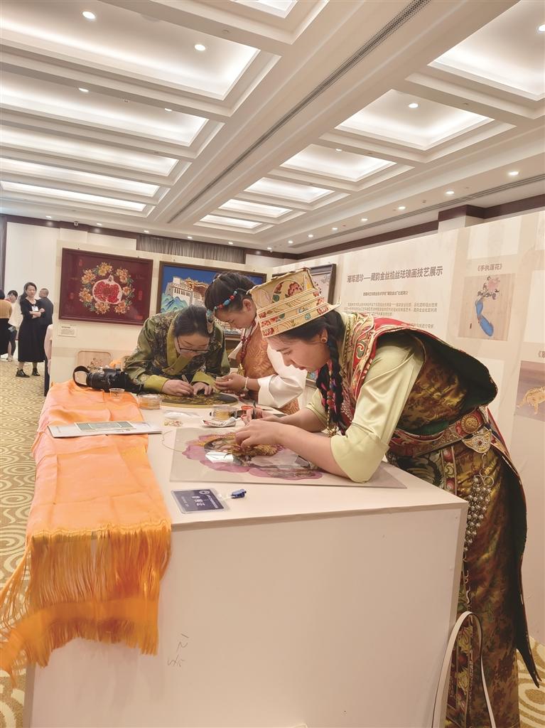 林芝市職業(yè)技術(shù)學(xué)?!安仨嵔鸾z掐絲琺瑯畫(huà)”應(yīng)邀參加職業(yè)教育優(yōu)秀非遺教學(xué)成果展。本版圖由林芝市職業(yè)技術(shù)學(xué)校提供