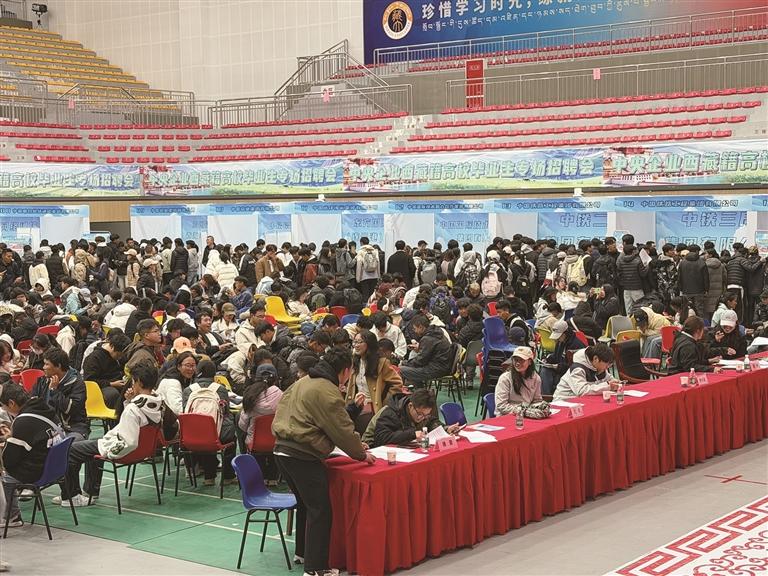 就業(yè)援藏,是保障和改善民生的頭等大事。依托央企就業(yè)援藏機制,西藏自治區(qū)教育廳高校畢業(yè)生就業(yè)指導(dǎo)服務(wù)中心聯(lián)合國務(wù)院國資委中智集團、自治區(qū)國資委,經(jīng)過多輪磋商座談,精準(zhǔn)選定4所高校作為宣講站點,將優(yōu)質(zhì)央企資源直接送到西藏高校畢業(yè)生身邊,組織了此次專場招聘會。