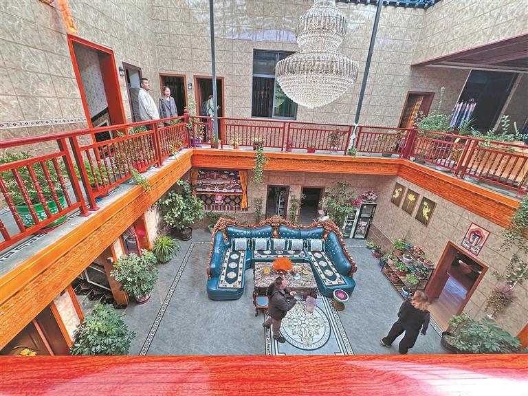 走進次仁措姆家院子里,她正在自家果園采摘剛成熟的石榴,房前的小院里整齊擺放著各種盆栽。“以前房前屋后雜物亂堆,經(jīng)過整治,空出的地方種上了蔬果,現(xiàn)在家家戶戶都有小果園,多虧了村里的整治行動?!贝稳蚀肽奉I(lǐng)著我們到客廳,指著墻上的“美麗庭院”流動紅旗笑著說:“這面旗是上個月評上的,現(xiàn)在村里都比著搞衛(wèi)生,誰也不想落后。”