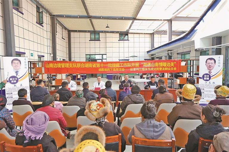 圖為湖南省第十一批援藏工作隊(duì)醫(yī)療隊(duì)的醫(yī)生在普瑪江塘邊境派出所為群眾進(jìn)行義診。