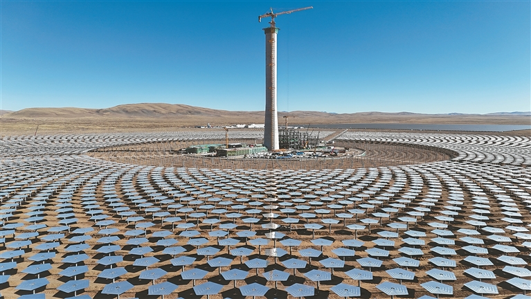 圖為那曲市安多縣帕那鎮(zhèn)土若村的“100MW光熱+800MW光伏”一體化項目建設現(xiàn)場。記者 趙書彬 攝