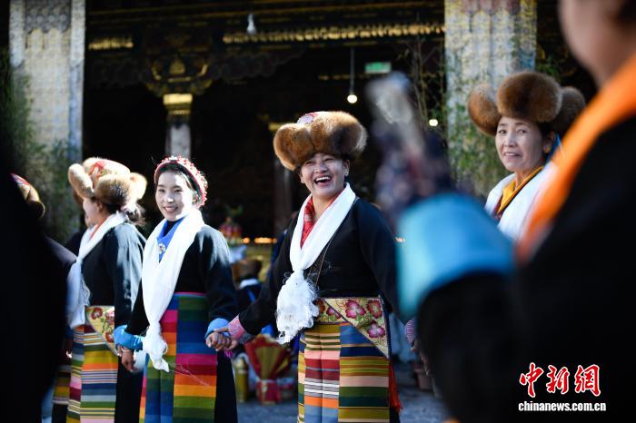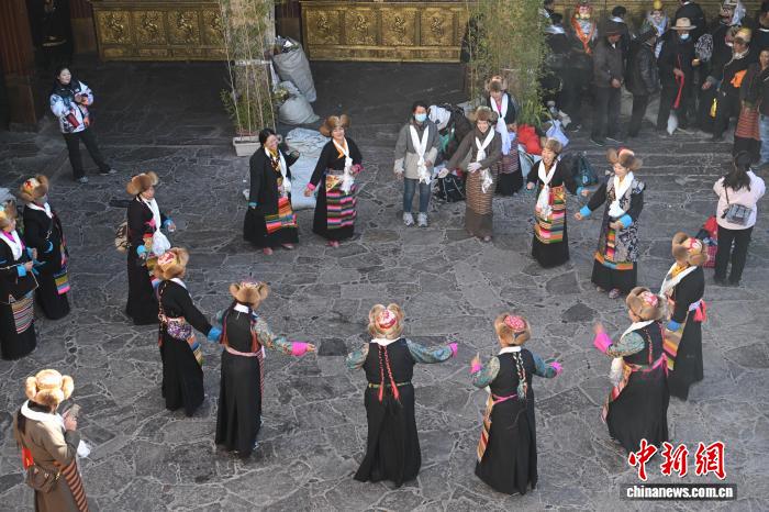 隨著藏歷十月十五白拉姆節(jié)(又稱“仙女節(jié)”)臨近,11月28日,西藏拉薩的婦女們?cè)诖笳阉绿饌鹘y(tǒng)舞蹈,迎接“仙女節(jié)”到來(lái)。“仙女節(jié)”即吉祥天母節(jié),藏語(yǔ)稱“白來(lái)日追”。相傳藏傳佛教最高護(hù)法神之一班丹拉姆的女兒白拉姆,不顧母親的反對(duì)與赤尊贊私定終身,班丹拉姆一怒之下將赤尊贊趕到拉薩河南岸,規(guī)定二人僅每年的藏歷十月十五日相見。中新社記者 貢嘎來(lái)松 攝