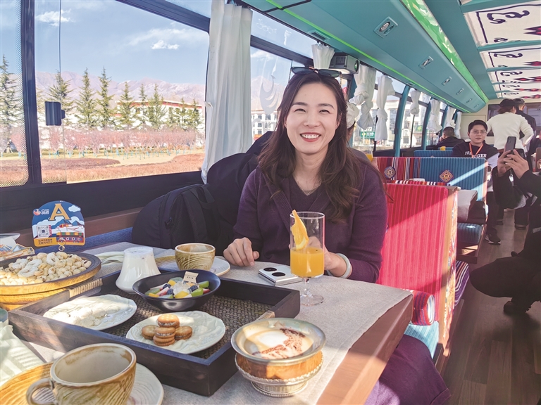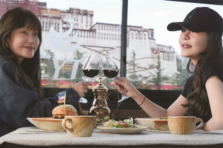 為了讓游客和市民能夠品嘗到最地道的拉薩美食,觀光巴士運(yùn)營(yíng)方與拉薩多家知名餐廳展開了深度合作。乘車期間,游客可以圍爐煮茶,感受那份溫馨與愜意,品嘗果茶的清甜、干果的香脆與甜品的綿密交織在口中的美妙滋味;還可以喝上一杯用高原牦牛奶與醇厚紅茶小火慢熬而成的甜茶,搭配上融合藏式元素的精致茶點(diǎn),仿佛瞬間穿越到了拉薩當(dāng)?shù)厝说纳钪校两襟w驗(yàn)他們的悠閑午后時(shí)光。
