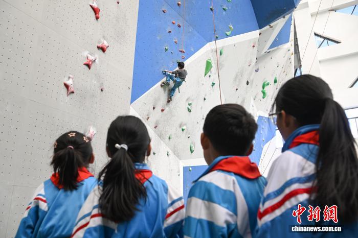 12月5日,西藏登山隊(duì)在拉薩市實(shí)驗(yàn)小學(xué)持續(xù)推進(jìn)“攀巖進(jìn)校園”興趣班活動(dòng)。據(jù)悉,該興趣班自2025年5月開設(shè),面向三四年級(jí)學(xué)生,每周星期五下午組織40余名學(xué)生前往西藏自治區(qū)競(jìng)技體育管理中心攀巖館,開展攀巖技術(shù)學(xué)習(xí)與興趣培養(yǎng)。圖為拉薩市實(shí)驗(yàn)小學(xué)的學(xué)生在學(xué)習(xí)攀巖。中新社記者 貢嘎來松 攝