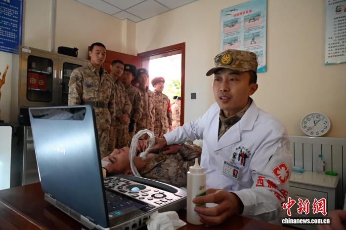 圖為醫(yī)生為部隊官兵檢查身體。西藏軍區(qū)總醫(yī)院供圖