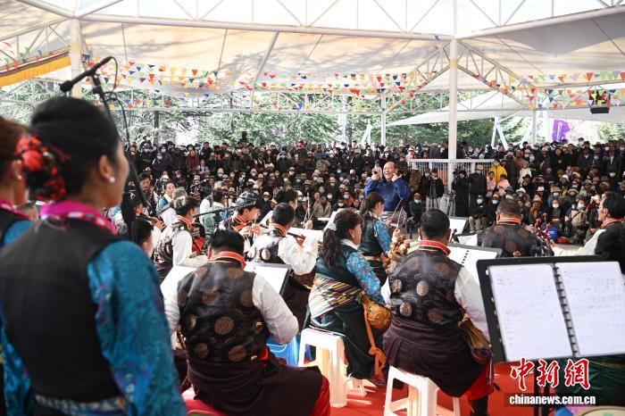 12月20日,為熱烈慶祝西藏自治區(qū)成立60周年,由西藏自治區(qū)文化和旅游廳主辦的格?;ㄑ莩黾尽履辍拔覀兊墓?jié)日 群星薈萃”群眾音樂會在拉薩宗角祿康公園精彩上演。音樂會節(jié)目豐富多樣,涵蓋民樂合奏、少兒藏戲、獨(dú)唱重唱等多種形式。傳統(tǒng)韻味與時代氣息交融,各族群眾以歡歌贊頌發(fā)展巨變,共迎美好新年。