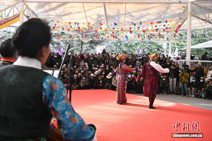 圖為群眾音樂會表演拉薩堆諧《強(qiáng)確拉》。中新社記者 貢嘎來松 攝