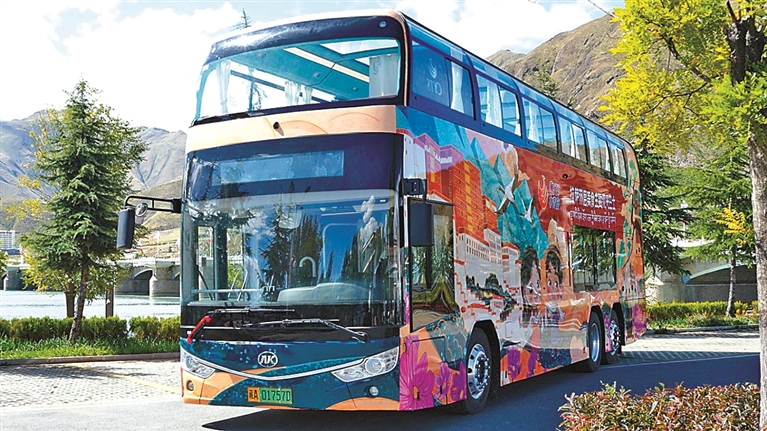 游客體驗拉薩雙層美食主題觀光巴士文旅項目。