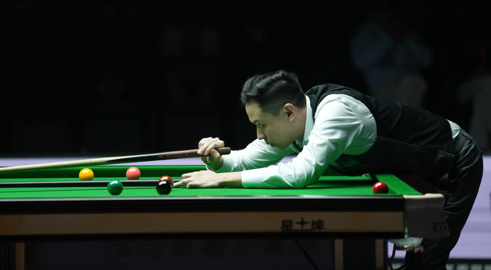 中國(guó)選手肖國(guó)棟在2025拉薩冬季高原斯諾克挑戰(zhàn)賽比賽中。新華社記者 晉美多吉 攝