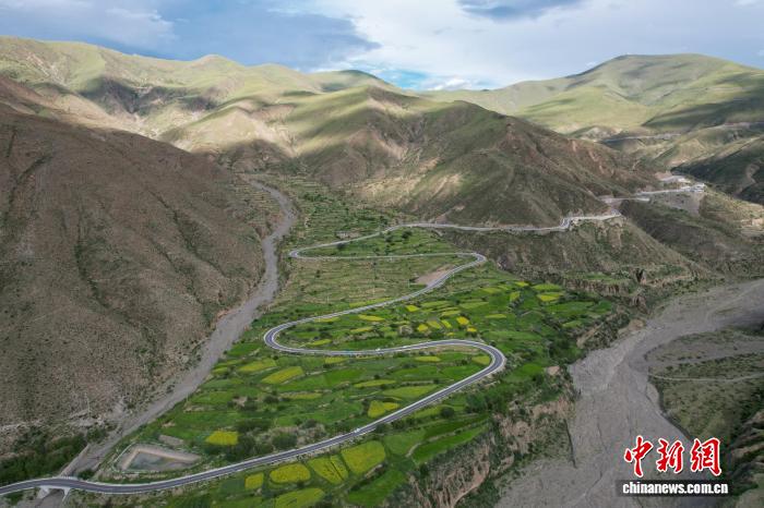 2025年7月15日,航拍西藏自治區(qū)拉薩市曲水縣境內(nèi)的崗巴拉山盤山公路。(無人機(jī)畫面)中新社記者 江飛波 攝