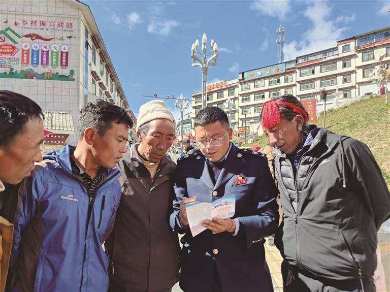聶拉木縣稅務(wù)局工作人員向企業(yè)講解稅費(fèi)政策。圖由自治區(qū)稅務(wù)局提供