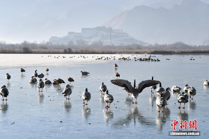 1月10日,被譽為“拉薩之肺”的西藏拉薩市拉魯濕地,已成為候鳥的越冬樂園。貢嘎來松 攝