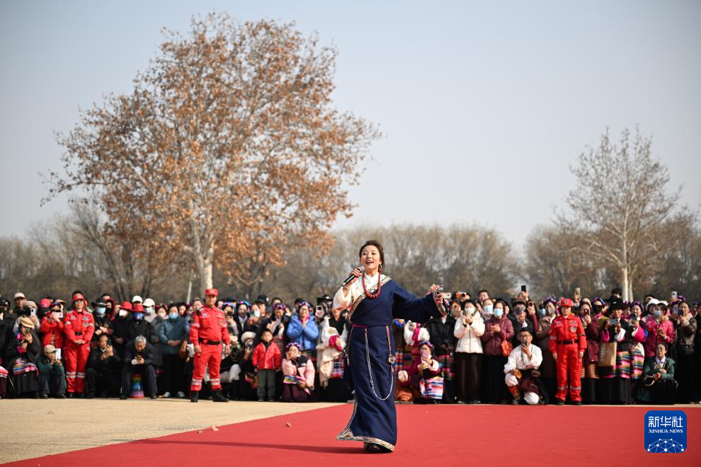 1月17日,來(lái)自西藏自治區(qū)昌都市基層文藝團(tuán)體的演員在西安大明宮國(guó)家遺址公園演唱歌曲。