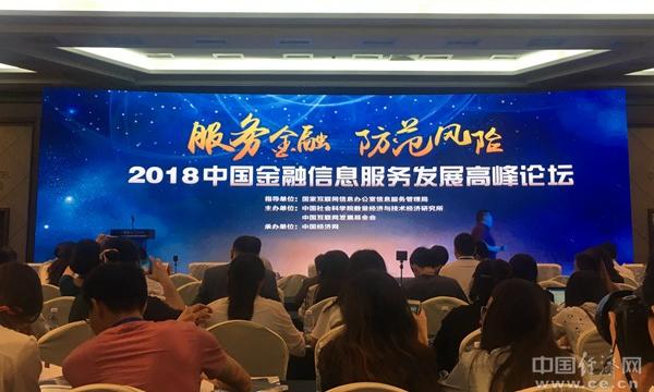 圖為由國家互聯(lián)網(wǎng)信息辦公室信息服務(wù)管理局指導(dǎo),中國社會科學(xué)院數(shù)量經(jīng)濟(jì)與技術(shù)經(jīng)濟(jì)研究所、中國互聯(lián)網(wǎng)發(fā)展基金會聯(lián)合主辦,中國經(jīng)濟(jì)網(wǎng)承辦的“2018中國金融信息服務(wù)發(fā)展高峰論壇”。經(jīng)濟(jì)日報-中國經(jīng)濟(jì)網(wǎng) 甄紅南/攝