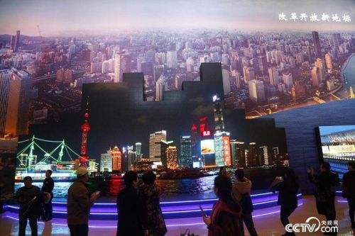 觀眾駐足觀看慶祝改革開放40周年大型展覽(圖片來(lái)源:央視網(wǎng))