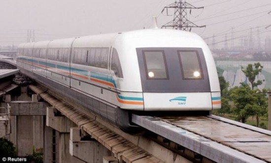 連接浦東機(jī)場(chǎng)和上海新金融區(qū)的國(guó)內(nèi)首列磁懸浮列車(圖片來(lái)源:央視網(wǎng))