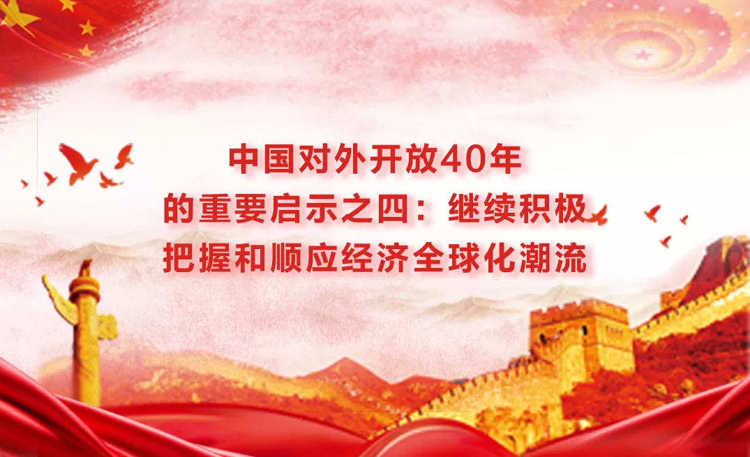 【編者按】經濟全球化是不可逆轉的歷史大勢,為世界經濟發(fā)展提供了強勁動力。改革開放40年,中國把握和順應經濟全球化歷史大勢,在開放中探索,在開放中奮進,逐步實現(xiàn)從“趕上時代”到“引領時代”的偉大跨越。在慶祝改革開放40周年之際,為了深刻總結中國對外開放40年重要啟示,中國理論網精心推出《繼續(xù)積極把握和順應經濟全球化潮流》一文,以饗讀者。