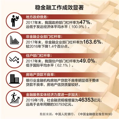 穩(wěn)金融政策。去年底召開的中央經(jīng)濟(jì)工作會議指出,穩(wěn)健的貨幣政策要松緊適度,保持流動性合理充裕,改善貨幣政策傳導(dǎo)機(jī)制。這釋放了穩(wěn)金融政策的明確信號。當(dāng)前,應(yīng)注意以下幾個(gè)方面:一是暢通利率傳導(dǎo)渠道。要把握貨幣政策最終目標(biāo),繼續(xù)推進(jìn)利率市場化改革,強(qiáng)化貨幣政策前瞻性指引作用。二是提高貨幣政策的信貸傳導(dǎo)效率。商業(yè)銀行在貨幣政策信貸傳導(dǎo)中扮演著重要角色,提高貨幣政策的信貸傳導(dǎo)效率就要強(qiáng)化競爭,提高商業(yè)銀行市場化經(jīng)營水平,提高商業(yè)銀行信貸資源配置效率和風(fēng)險(xiǎn)管理能力,減少地方政府部門對商業(yè)銀行的不當(dāng)干預(yù)。三是注重貨幣政策與財(cái)政政策協(xié)調(diào)配合。在實(shí)施穩(wěn)健的貨幣政策的同時(shí),充分發(fā)揮財(cái)政政策的作用,通過大規(guī)模減稅降費(fèi)降低企業(yè)成本,激發(fā)企業(yè)投資意愿,引導(dǎo)企業(yè)對我國經(jīng)濟(jì)平穩(wěn)增長的預(yù)期。同時(shí),在控制債務(wù)規(guī)??偭康那疤嵯拢^大幅度增加地方政府專項(xiàng)債券規(guī)模,穩(wěn)妥處理地方政府債務(wù)風(fēng)險(xiǎn)。