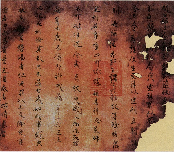 唐律在中國法制史上居于承前啟后的重要地位,以“得古今之平”著稱于世?!短坡墒枳h》在《貞觀律》基礎上修訂而成,為大唐盛世奠定了法律基石,充分體現(xiàn)了中國古代法律制度的水平、風格和基本特征,成為中華法系的代表性法典之一。圖為《唐律疏議》殘片(局部)。
