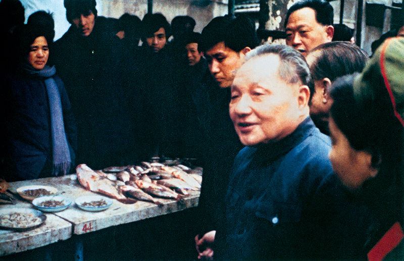 1983年2月,鄧小平同志視察上海市靜安區(qū)膠州路農貿市場。