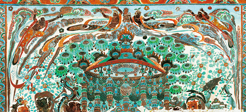 敦煌是古代中國認(rèn)識世界的前沿,也是當(dāng)時世界了解中國的窗口之一。在這里,來自印度、希臘、波斯等國家和中亞地區(qū)的文化,與中國文化平等對話,在交流融合中不斷創(chuàng)新、不斷進步,使其成為中西文明交往的樣板。圖為敦煌莫高窟第320窟的壁畫。 敦煌研究院供圖