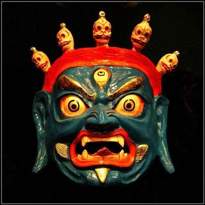 面具,藏語中稱“巴”,主要用于各種民間表演活動,它與人們?nèi)粘I睢趧?、娛樂有著直接的關(guān)系,遍及全區(qū)各地。西藏面具大致分為差姆(跳神)面具、藏戲面具、懸掛面具三類。面具的制作材料有金質(zhì)、皮質(zhì)、祭品、木質(zhì)、紙質(zhì)、泥質(zhì)、貼布脫胎等。由于地域的差異、用途的不同,西藏面具呈現(xiàn)出多姿多彩、對比強烈、形式各異的特點。