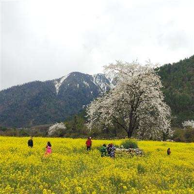 說起高原之春,就不得不提林芝“桃花節(jié)”了。林芝桃花以其獨特的風(fēng)光盛名在外、享譽全國。最具代表性的要數(shù)波密的野生桃花,其樹干雄勁、花朵綻放、春意盎然。粉嫩的桃花,在雪山懷抱中彰顯著無限柔媚。妖嬈的桃花映著蔚藍云天,美不勝收。那一片片野生桃林掩映在皚皚雪山之下,油菜花襯托其間,美得不可方物,仿若人間仙境。