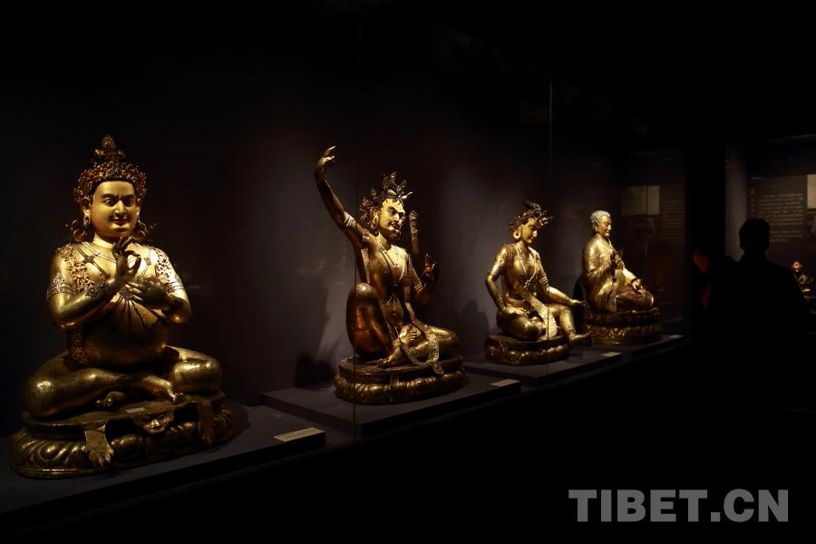 中國西藏網(wǎng)訊 日前,《天路文華——西藏歷史文化展》在首都博物館展出。展品匯集了北京、西藏、河北、重慶、青海五?。ㄊ小⒆灾螀^(qū))21家文物收藏單位共216件(組)文物。其中展出了大量的藏傳佛教造像,涵蓋了藏傳佛教寧瑪派、薩迦派、噶當(dāng)派、噶舉派的佛像精品。