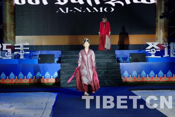 AJNAMO品牌服裝秀是此次巡展活動的首場藏裝T臺秀。為參加此次巡展,知名藏族歌手、登上國際時裝周的少數(shù)民族設(shè)計師阿佳娜姆,帶來了自己親手設(shè)計的40多套藏族服飾,以高原紅、哈達白與牦牛黑來詮釋藏族服飾。