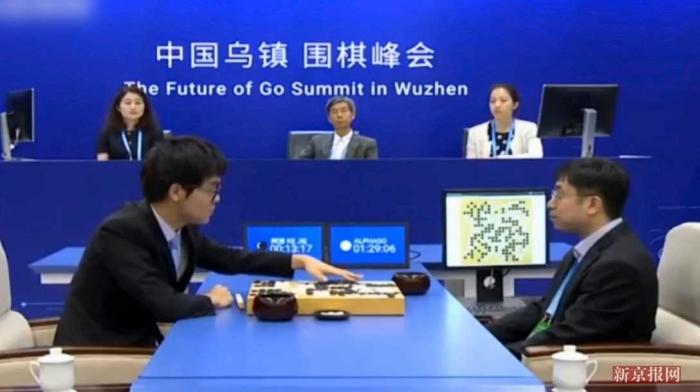 圖為2017年5月柯潔與AlphaGo的三番棋大戰(zhàn) 圖片來源:新京報(bào)網(wǎng)