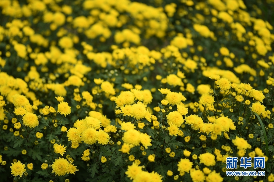 圖為烏蘭縣一合作社內(nèi)盛開的黃菊。