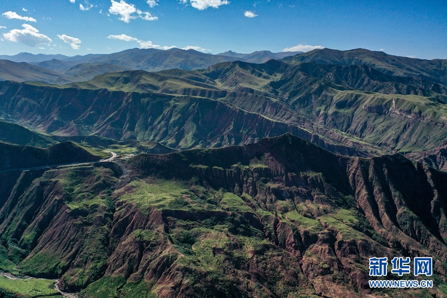 在果洛州瑪沁縣軍功鎮(zhèn),群山高聳,河流穿梭,氣勢磅礴。