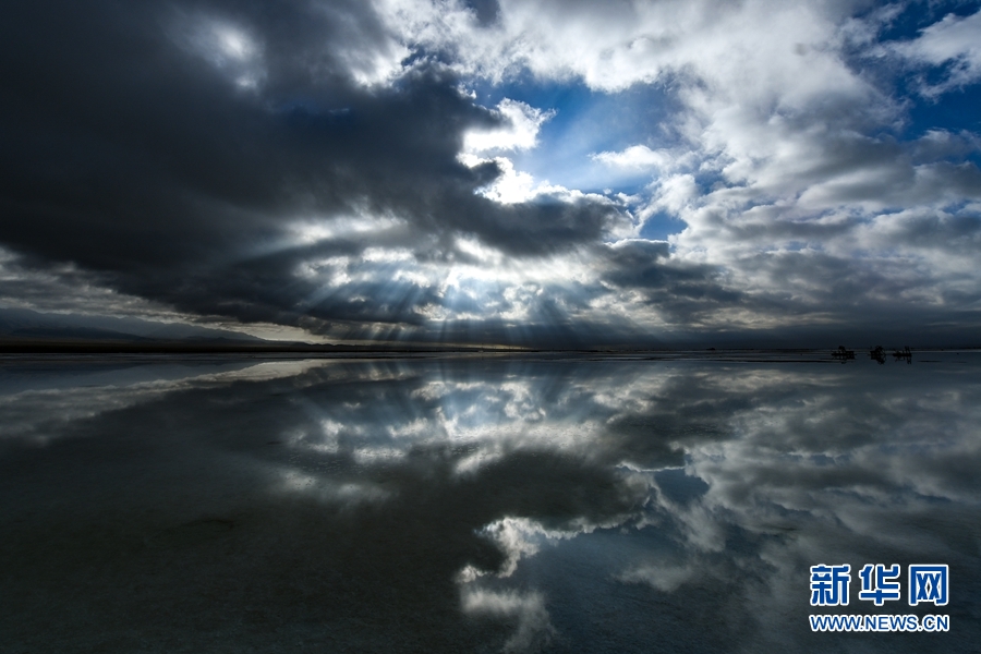 云彩漸漸退去,光芒開始顯現(xiàn),茶卡鹽湖的美妙時刻就這樣開始了。
