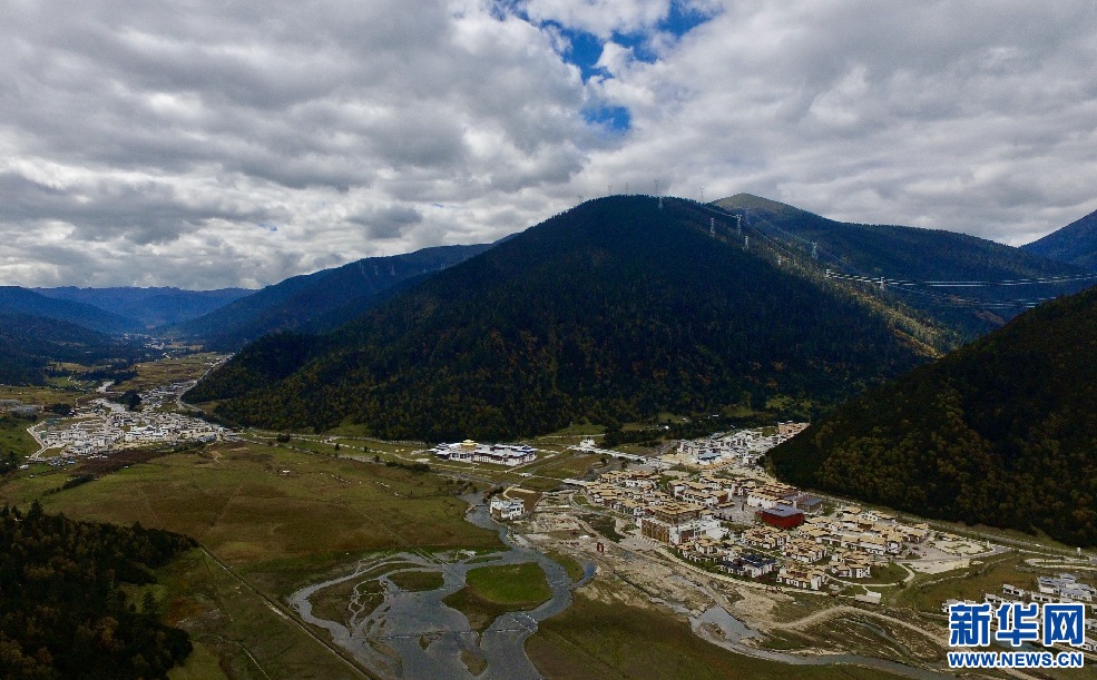 鳥瞰魯朗小鎮(zhèn)(10月15日攝,無人機照片)。新華網(wǎng) 柑丹鴦琦攝