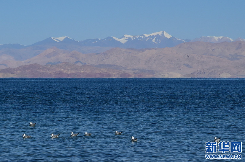 游弋在班公湖中的鳥(niǎo)兒(10月19日攝)。新華網(wǎng) 張宸攝