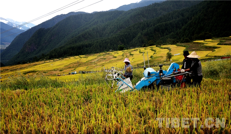 嘎腰村的梯田風(fēng)光在當(dāng)?shù)睾苡忻麣猓窖系拇笃咎?,已?jīng)開始收割。
